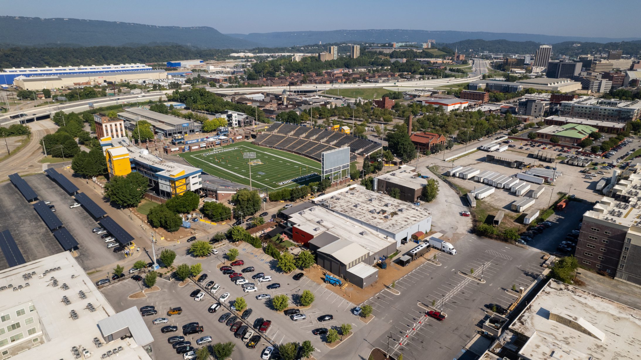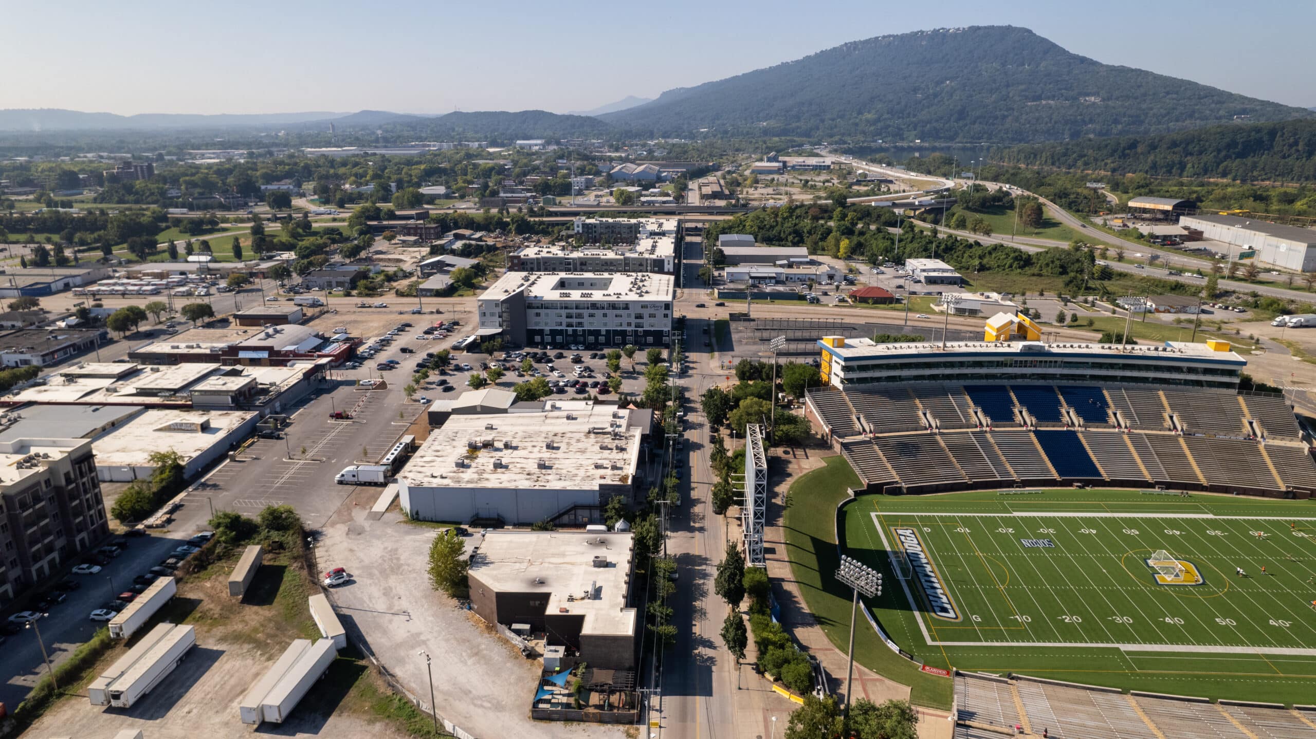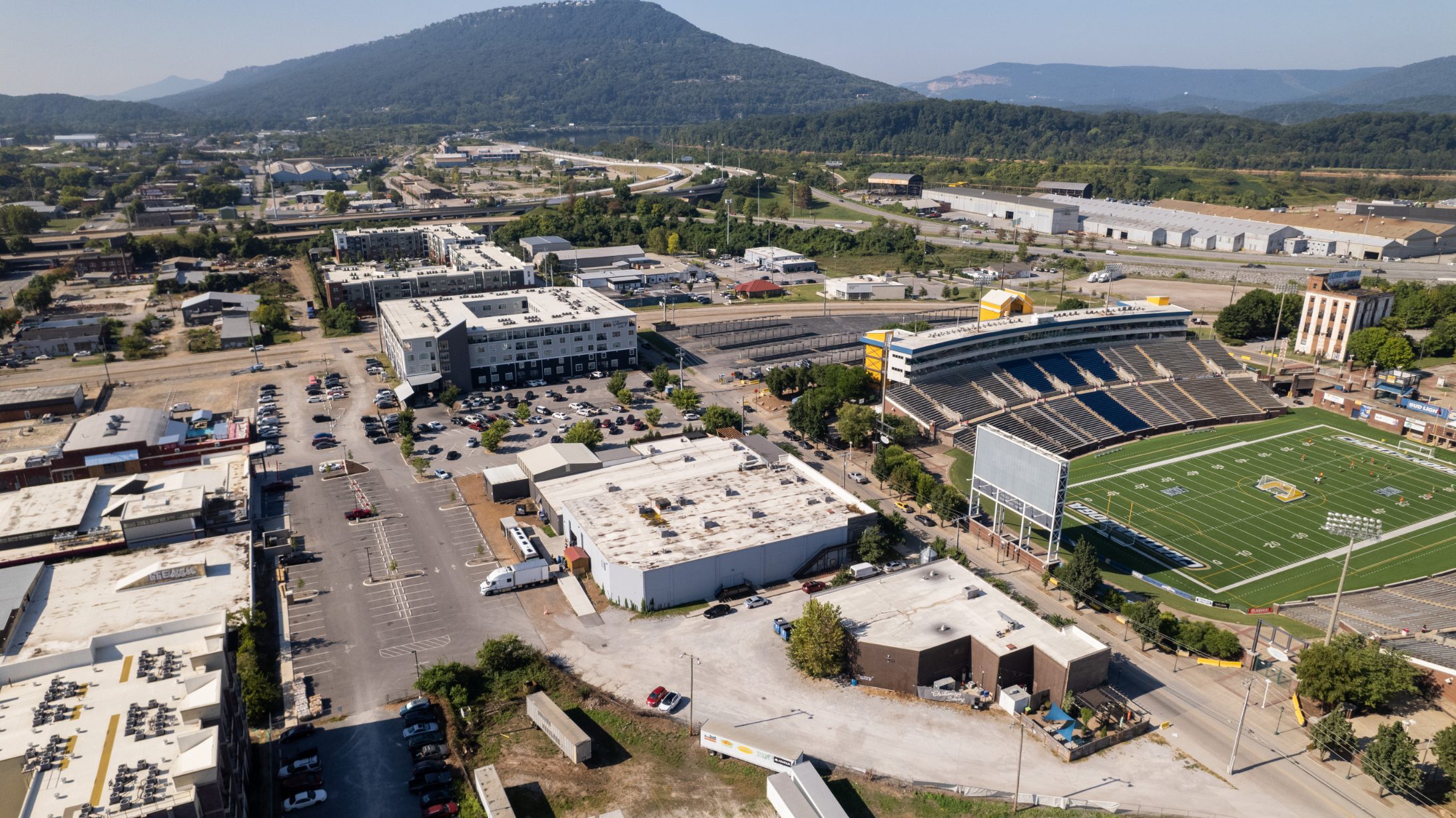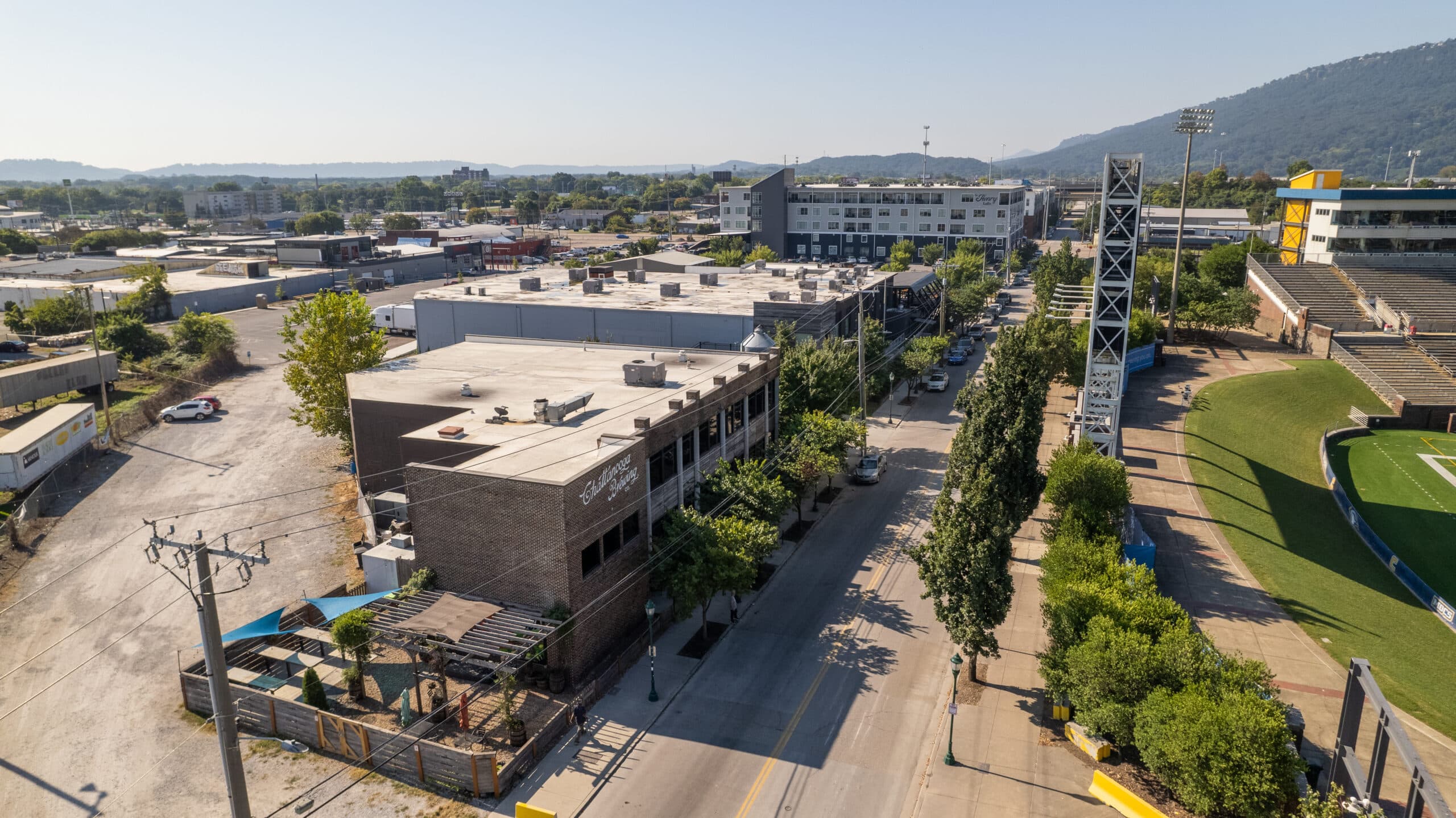 Once a neglected stretch in downtown Chattanooga, Chestnut Street has transformed into one of the city’s most vibrant destinations. Adjacent to Finley Stadium and home to the Chattanooga Football Club, the area now features a lively mix of restaurants, apartments, a bowling alley, concert hall, grocery store, and brewery.